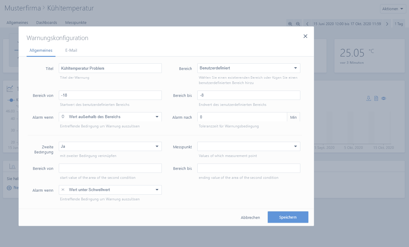 Meldungen empfangen, wenn bestimmte Werte über- oder unterschritten werden, um sofort mit entsprechenden Maßnahmen reagieren zu können.