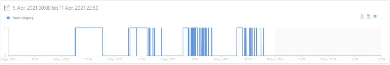 Zeiten während eines Tages, zu denen ein LineMetrics Büroraum belegt (1) bzw. nicht belegt (0) ist.