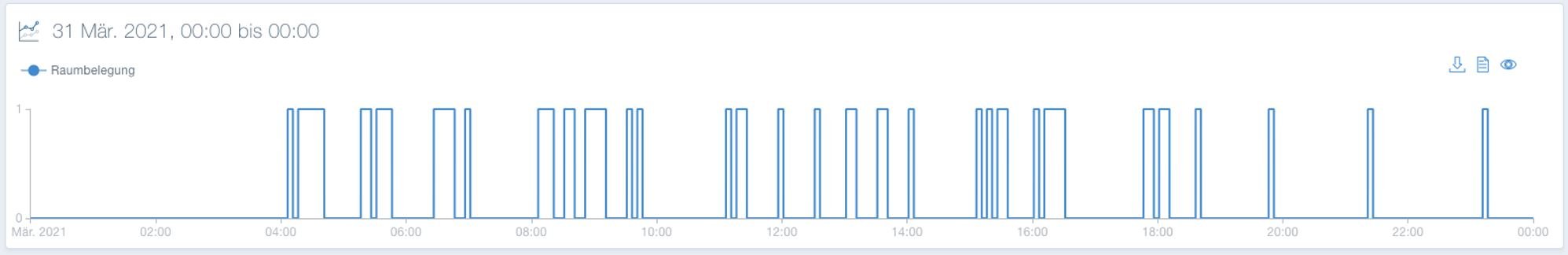 Zeiten während eines Tages, zu denen ein LineMetrics Büroraum belegt (1) bzw. nicht belegt (0) ist.