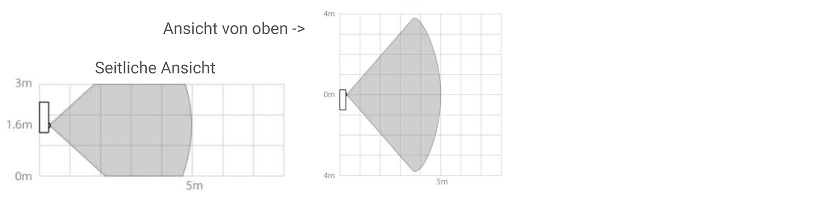 Erfassungsbereich (seitliche Ansicht bei Montage des Sensors in Höhe von 1,60 m):